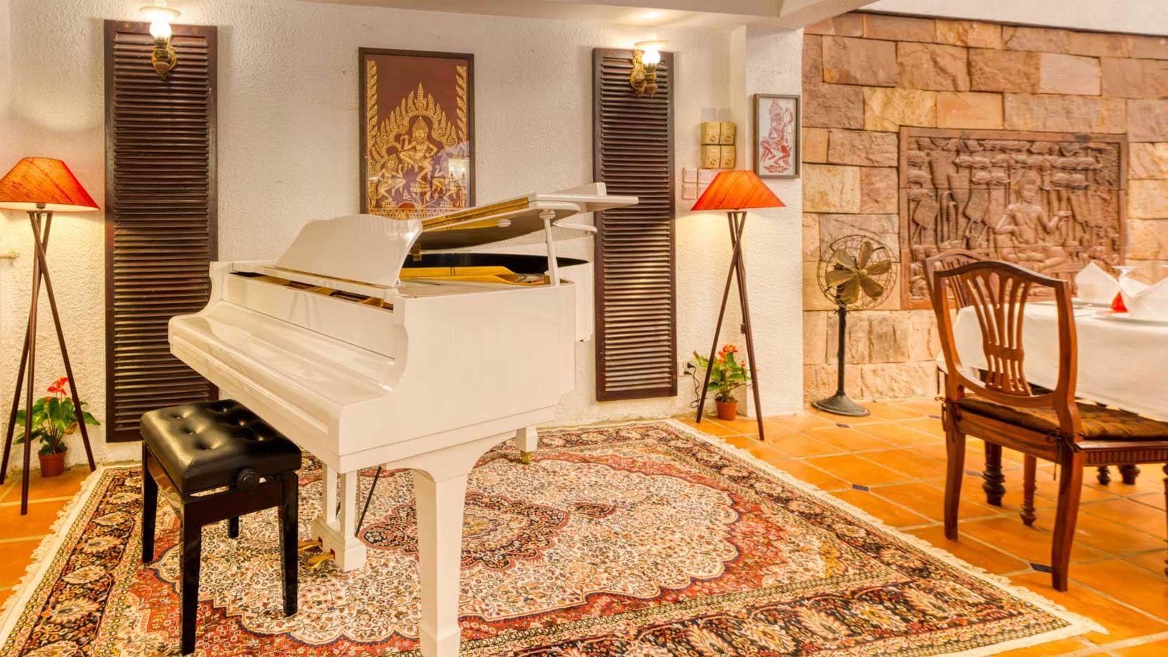 The Piano Pool Bar just a few steps from the deck is on hand to provide cool quenchers, fresh fruit juices, smoothies, cocktails and spirits prepared on the spot as well as light snacks from the kitchen nearby.